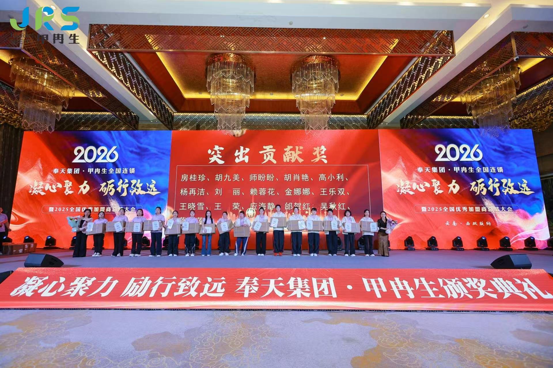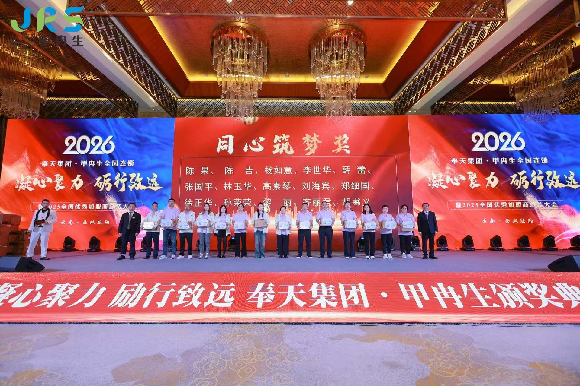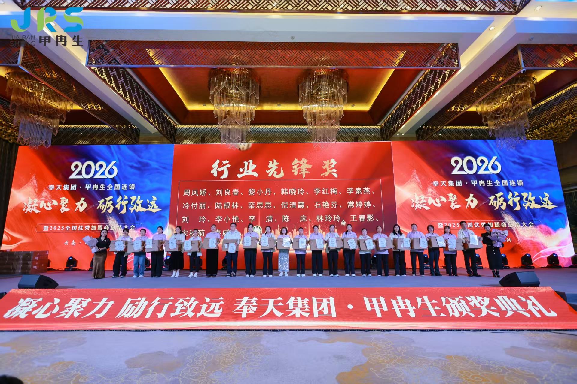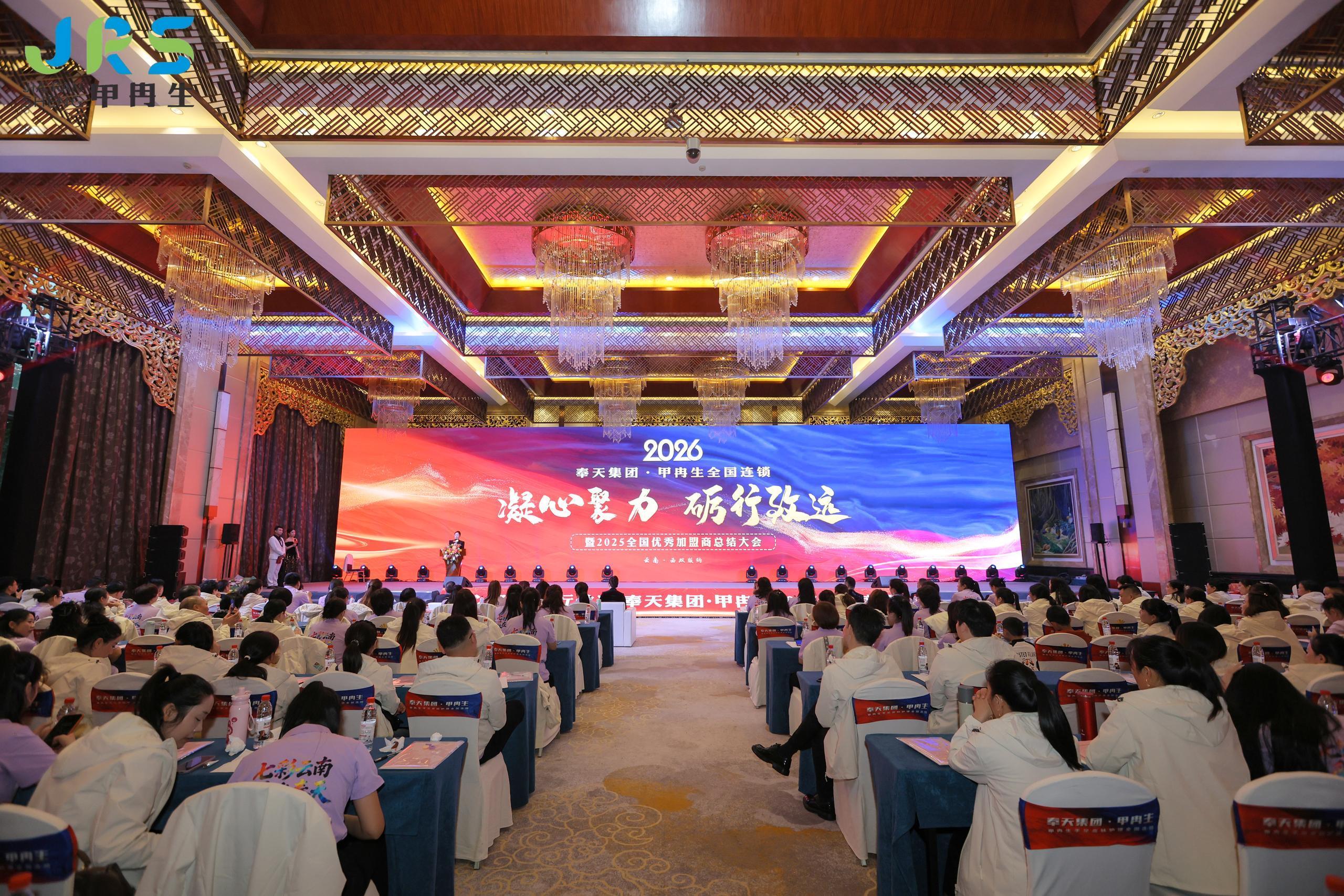 2025年12月25日,奉天集团甲冉生全国连锁“凝心聚力 砺行致远”年会在云南西双版纳世纪金源大饭店隆重举办。甲冉生总部领导和员工,全国各大区总监,各连锁门店负责人、店长,共计200余人参加。