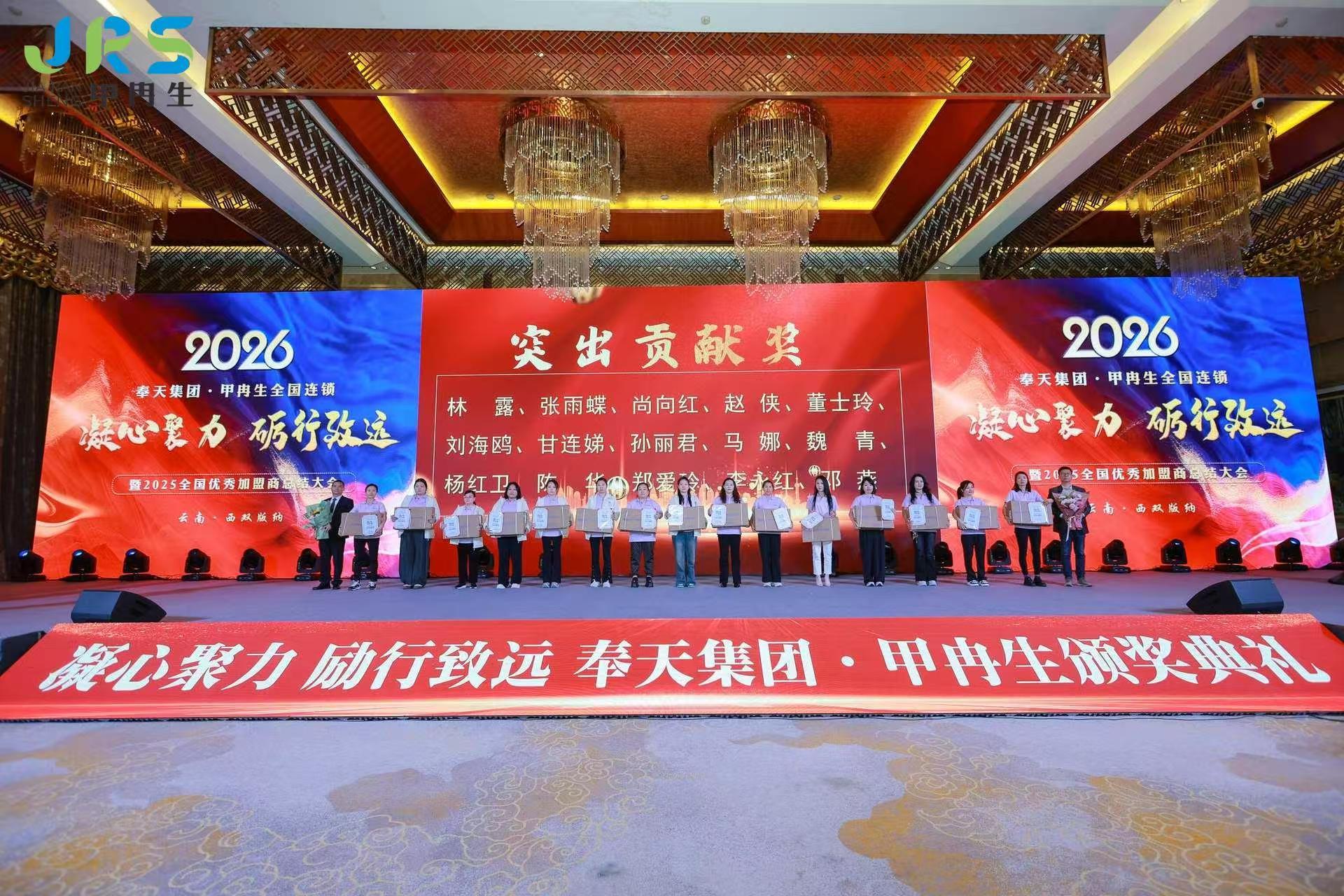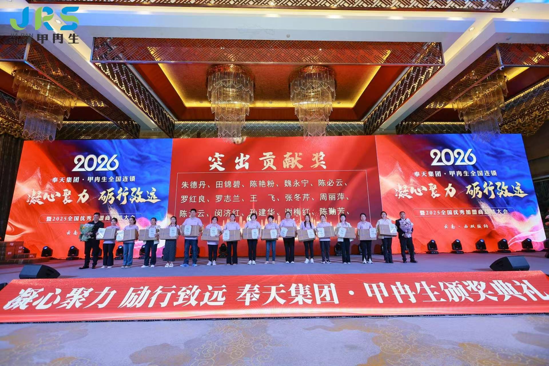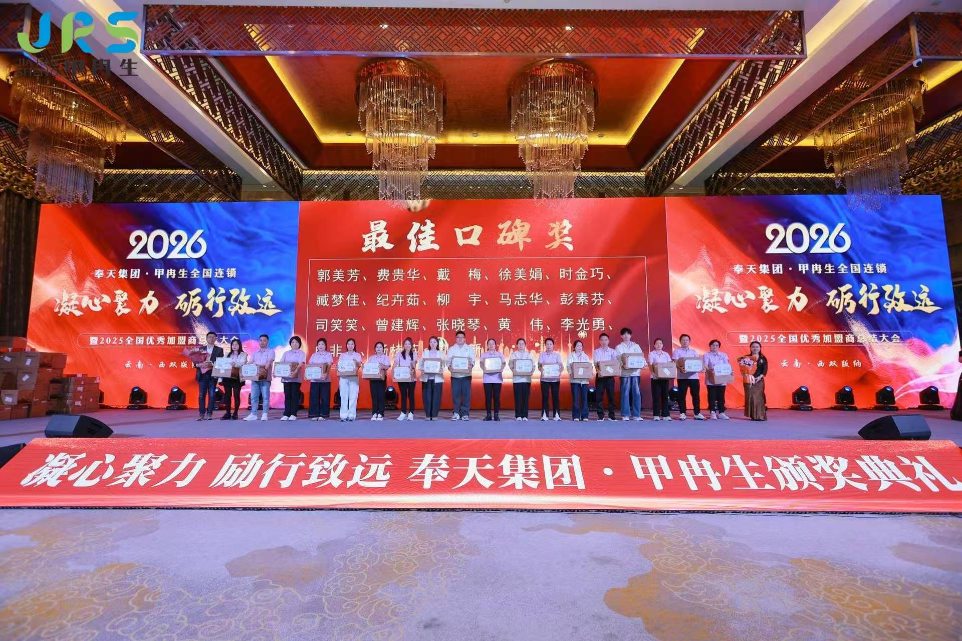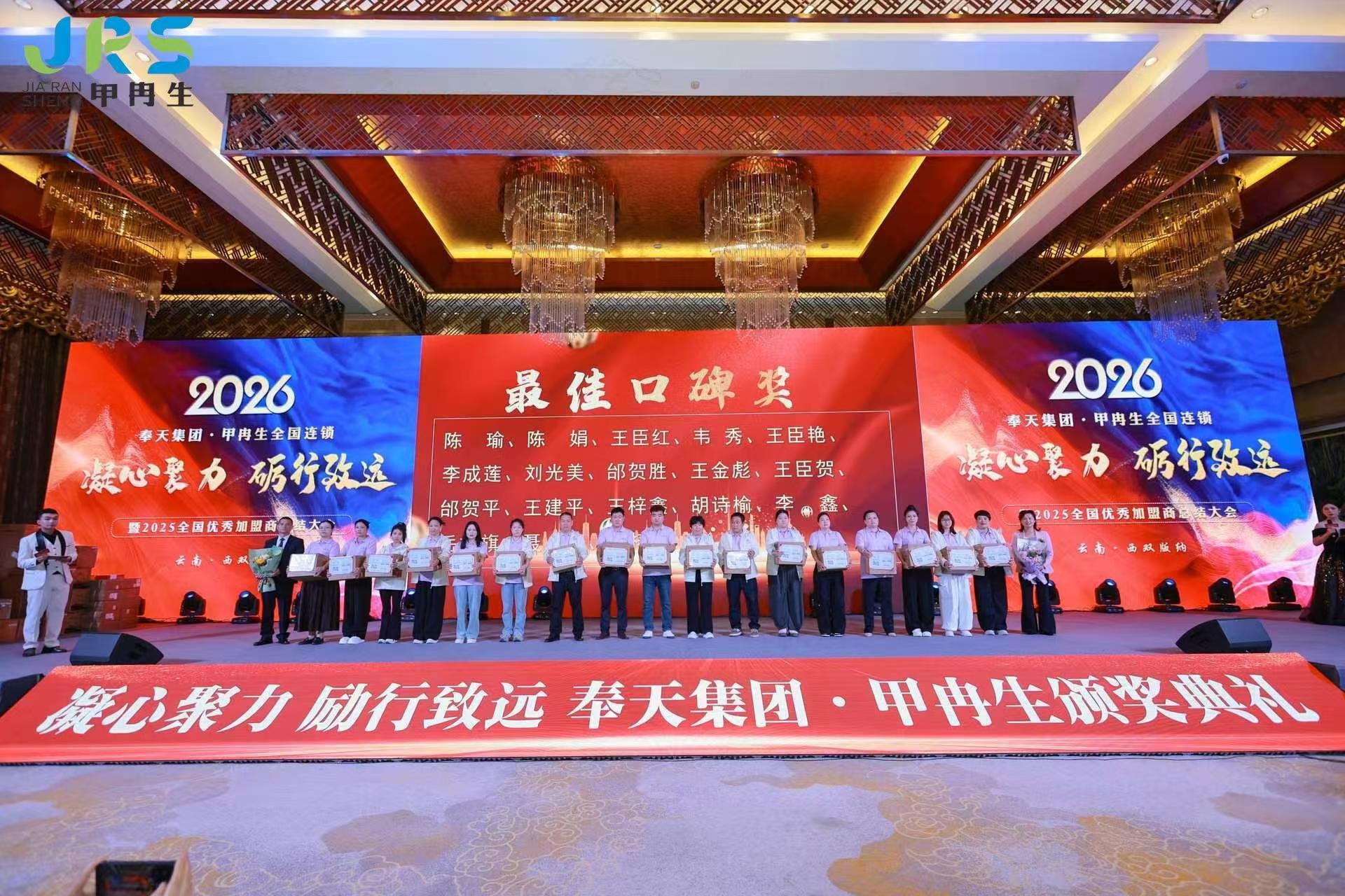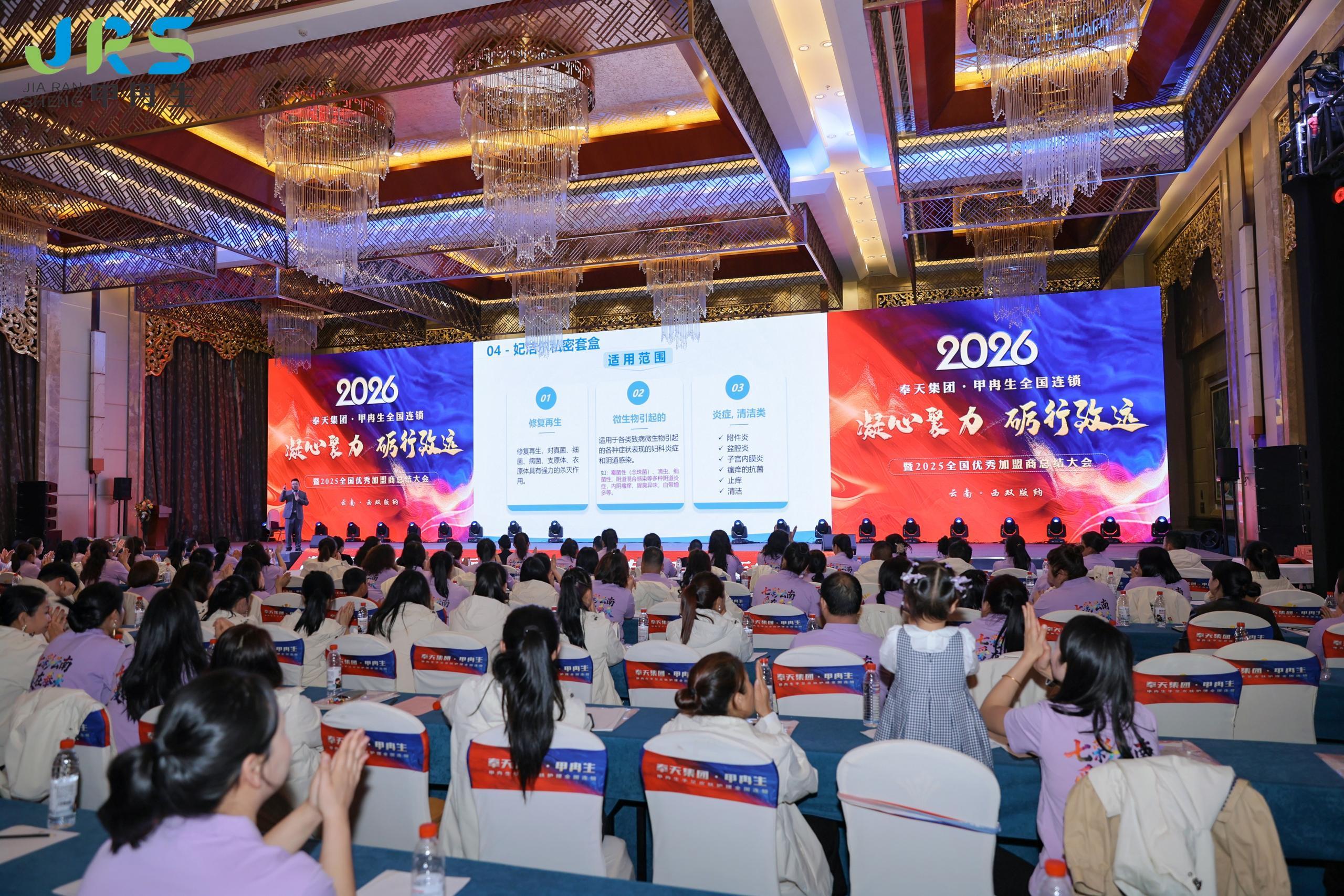 2025年12月25日,奉天集团甲冉生全国连锁“凝心聚力 砺行致远”年会在云南西双版纳世纪金源大饭店隆重举办。甲冉生总部领导和员工,全国各大区总监,各连锁门店负责人、店长,共计200余人参加。