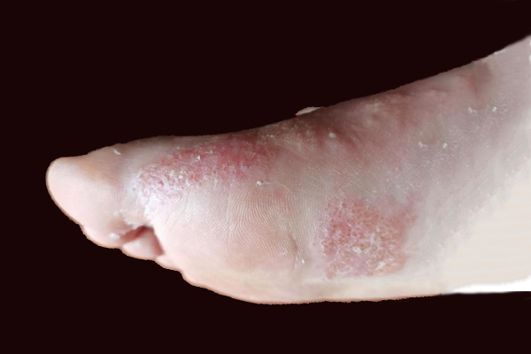 以上是水疱型脚气、糜烂型脚气与足部湿疹的区别。此外还有一种脚气类型--鳞屑角化型脚气,它好发于足跟、足缘部。表现为角化过度,干燥,粗糙,脱屑,基底淡红。多单足发生,也可双足均累及。自觉瘙痒较轻,冬季常皲裂疼痛。鳞屑角化型脚气大多是由于糜烂型、水疱型脚气多年没祛根,转化而成。